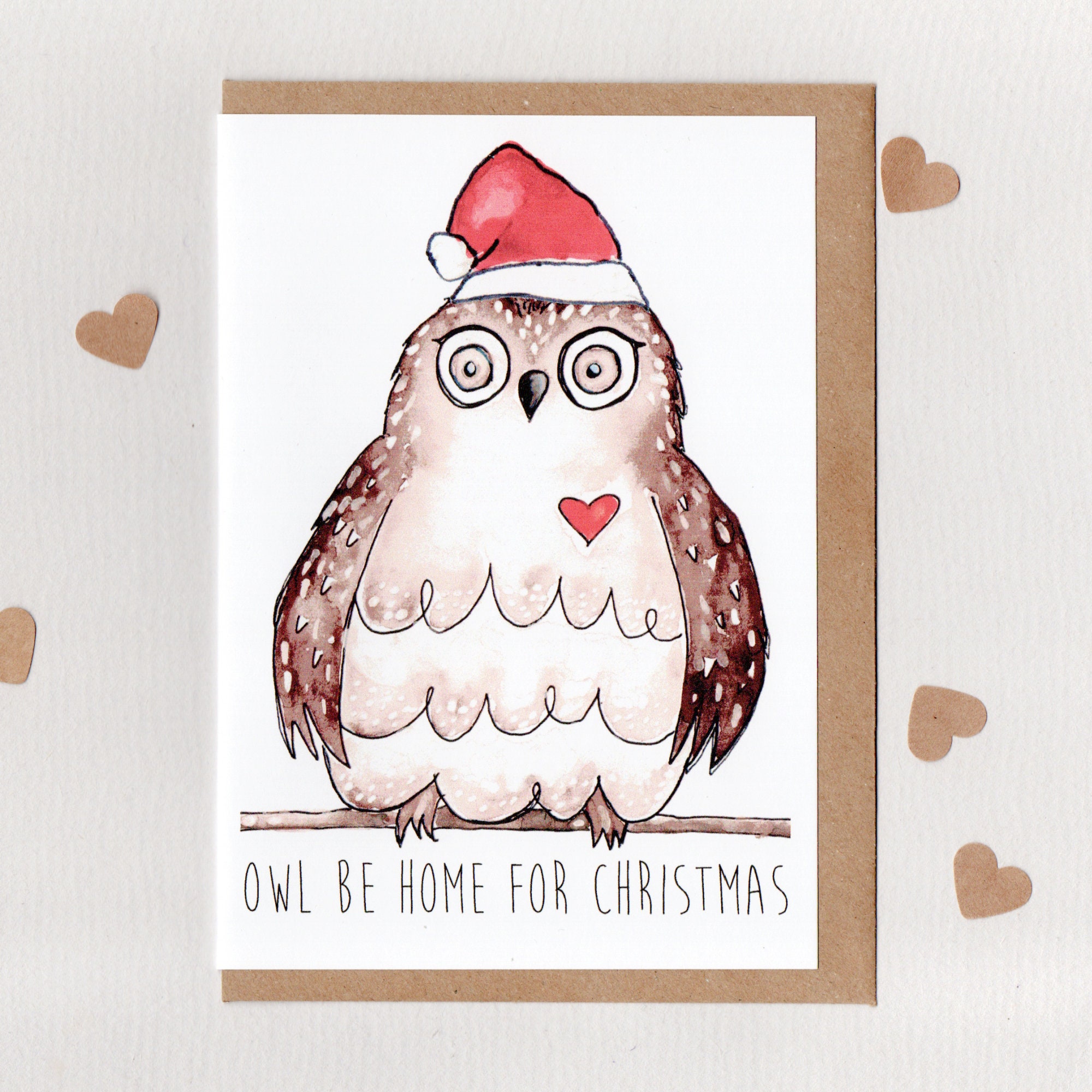 Owl Be Home For Christmas Owl Christmas Card Owl Pun Owl Etsy Uk